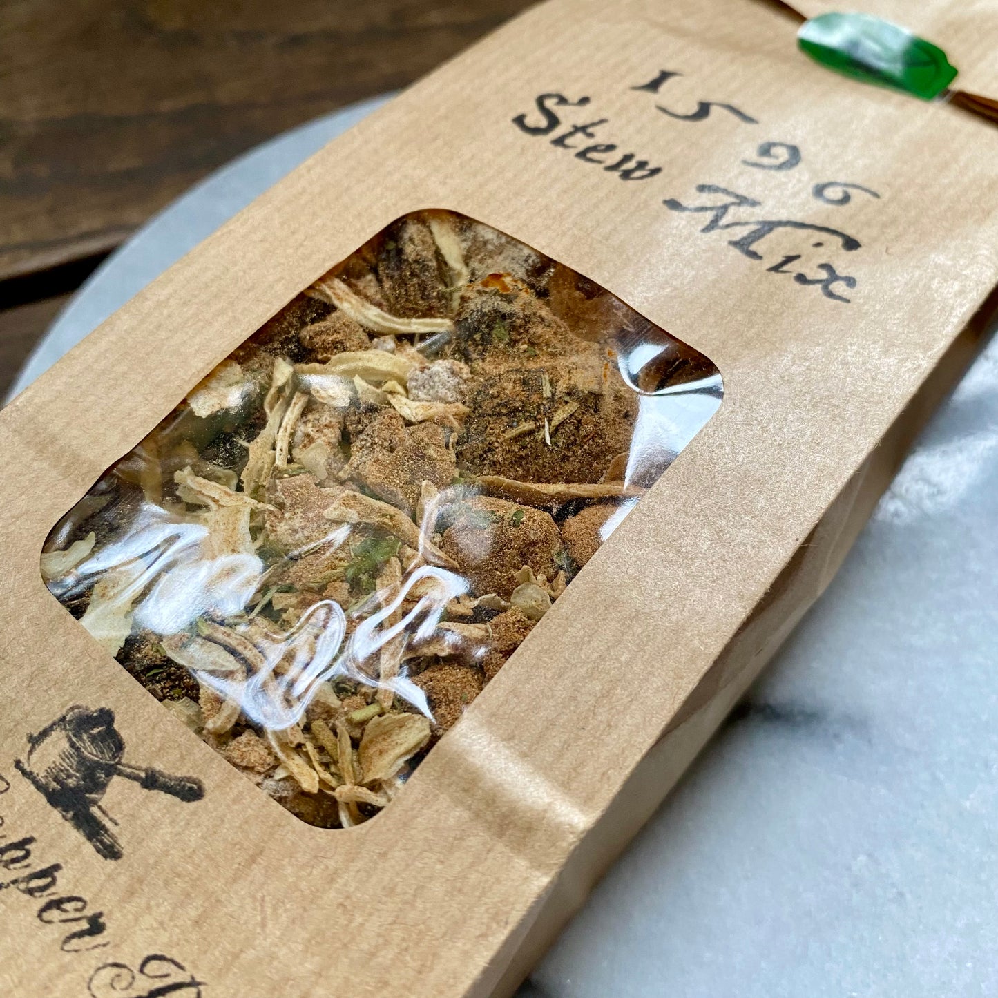 This stew mix is based upon the recipes of Thomas Dawson from the times of William Shakespeare and Elizabeth I. The rich flavour of spice evokes the age of discovery. To be historically accurate, try making it with ale or cider & then serve it on ‘sops’ (chunks of bread), and try some Pea Pottage with it; or it is equally good served alongside modern vegetables.